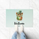 Paillasson Chouette mignonne dans un chapeau vert Bienvenue