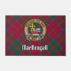 Clan MacDougall badge crête entouré d'une sangle et boucle sur l'arrière - plan tartan. Texte personnalisé.