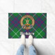 Clan MacIntyre badge crête entouré d'une sangle et boucle sur l'arrière - plan tartan. Texte personnalisé.