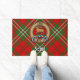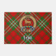 Clan Scott badge crête entouré d'une sangle et boucle sur l'arrière - plan tartan rouge. Texte personnalisé.