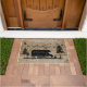 Ce tapis de portes rustique fait le cadeau parfait pour votre classe C RV. Les mots en haut peuvent être personnalisés selon vos besoins. Quelques exemples sont "happy campers" ou "bienvenue chez nous" ou tout ce que vous voulez. En bas, vous pouvez ajouter votre propre nom ou mettre ce que vous voulez aussi. Le tapis de porte présente des oiseaux volant au-dessus des montagnes avec la lune et les étoiles dans l'arrière - plan et un feu de camp au premier plan.