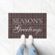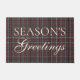 This elegant front door porch doormat features a plaid pattern and the classic message "Season's Greetings." It showcases shades of green, dark blue, and red, creating a classy and nostalgic English holiday atmosphere. This doormat is perfect for decorating a colonial-style home during the Christmas season, as well as for a country cottage, log cabin, or vacation home by a lake or river.