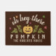 Natte classique et élégante pour couleurs de chute - "oh hé là texte de citrouille" avec un citrouille, les vignes, le feuille, et votre nom de famille | parfait pour Halloween et thanksgiving - de jolies et colorées d'automne de brun auburn, d'orange de butternut, de blanc de vert et de toile olive, et de plus.