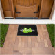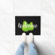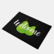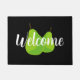 Mignonne natte de bienvenue aux fruits de poire verts. Personnalisez avec votre propre nom en option. Tapis de porte couleur sur mesure pour entrée, maison, maison, hôtel, affaires, entreprise, magasin, épicerie, clinique, etc. Arrière - plan couleur noir ou personnalisé avec typographie de script.