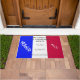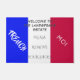 Un "cadeau français" à offrir à la famille, aux amis ou aux collègues qui déménagent dans leur nouvelle maison ou pour une fête familiale. Vous pouvez demander poliment à vos invités de retirer leurs chaussures avant d'entrer dans votre maison. L'arrière - plan est le drapeau français dont les couleurs sont Bleu, Blanc, Rouge. Côté bleu, le texte dit : "Français" - il est écrit en blanc. Sur le côté rouge, le texte dit : "moi" en français - ce qui signifie "moi" - il est écrit en blanc. Sur le côté blanc, le texte dit : "Bienvenue dans le domaine Landspeak" - Customisez avec votre nom. Ci-dessous, il est écrit : "Veuillez retirer vos chaussures" - Les deux textes sont écrits en gris foncé.