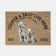 Présentant notre magnifique tapis de portes en coco avec deux adorables Dalmatiens assis côte à côte, prêts à vous accueillir ainsi que tous vos amis furieux avec des pattes ouvertes! Conçu avec amour et attention aux détails, ce tapis de porte n'est pas seulement un ajout fonctionnel à votre porte, mais aussi un énoncé fantaisiste qui apportera un sourire à votre visage chaque fois que vous entrez dans votre maison. Ce tapis de bienvenue peut être personnalisé avec le nom de votre chien, le slogan peut aussi être changé ou vous pouvez utiliser une photo de votre propre chien (assurez-vous qu’elle est transparente). Texte : Cooper & Sally Live Ici... Toutes les friandises sont les bienvenues. Fait un cadeau merveilleux pour une fête de ménage, vacances, amoureux de les chiens et la plupart de toutes les occasions.