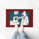 Drôle Docteur avec son Stethoscope est à l'écoute des pieds d'un patient. Tapis de porte Médicale.