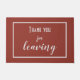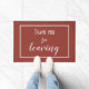 Ajoutez une touche humoristique (mais élégante) à votre porte avec ce tapis de porte amusant "Merci pour partir". La typographie simple et élégante rend le message enjoué clair : les introvertis sont heureux de vous voir, mais encore plus heureux quand vous partez. Un cadeau parfait pour les introvertis et les anti-sociaux. Amusant, décalé et un peu sarcastique, ce tapis d'accueil moderne apportera de l'originalité à votre maison. Police couleur ciment sur arrière - plan terre cuite.