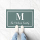 Rafraîchissez l'entrée de votre maison avec cet élégant monogramme personnalisé en gris turquoise bleu / vert et blanc. Remarque : les couleurs peuvent être modifiées. Personnalisez avec le nom de famille dans le script et un premier monogramme de style serif. Le design comprend une bordure simple encadrée.