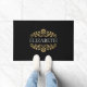 Un élégant mat de porte noir et or fleuri. Ajoutez votre nom entre la floraison dorée sur le devant. Conçu pour vous par Blackberry Boulevard.