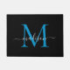 Paillasson Élégant noir bleu personnalisé Monogramme Nom du s