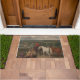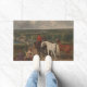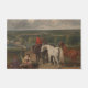 Ce dessin présente une peinture de l'artiste anglais John Frederick Herring Sr. (1795-1865). Il montre une scène rurale traditionnelle avec des chevaux traversant un chemin de terre. Les chevaux appartiennent au roi d'Angleterre. Il y a des arbres qui poussent sur l'herbe au loin. Les chevaux sont de couleurs différentes : l'un des chevaux a des cheveux blancs tandis que les autres chevaux ont des manteaux de différentes nuances de brun. Deux élégantes femmes sont assises sur le chemin.