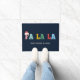 Coloré, festif, typographique "FA LA" chapeau santa, bleu foncé, tapis de porte de vacances. Customisez avec votre signature familiale.