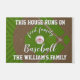 Ce tapis de porte personnalisé est parfait pour les fans de basket-ball foyer. Il y a un arrière - plan de base-ball avec un baseball illustré au centre. Personnalisez ce tapis de porte avec votre nom de famille en bas OU retirez cette partie pour laisser le fond vide. Un grand cadeau à offrir à une famille qui sont fans de baseball ou un cadeau de famille pour se régaler pour déménager dans une nouvelle maison.