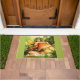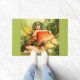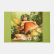 Fée blonde aux yeux bleus embrassant un grand champignon amanita pour customiser avec votre propre salutation, nom, message, etc
