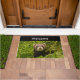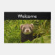 Porte d'accueil avec une adorable photo représentant un petit furet brun debout dans une longue herbe. Aussi mignon que possible !