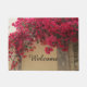Laissez vos invités entrer sur ce tapis accueillant avec de belles fleurs rouges qui descendent en cascade sur le côté d'un bâtiment ancien. Le message "Bienvenue" peut être modifié ou supprimé selon vos besoins.