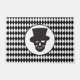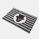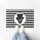 Ce tapis de porte d'Halloween est représenté dans un imprimé motif en diamant en arlequin noir et blanc avec une tête de crâne. Customisez cet objet ou achetez tel quel.