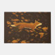 Un beau renard traverse une litière dorée de feuilles d'automne en chute. Par Paxdomino