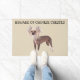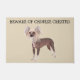 Amusant tapis d'accueil de la maison d'accueil avec un joli dessin d'une race chinoise de chien de race Crested et phrase humoristique Attention au Killer Chinese Crested. Conçu comme un drôle de tapis de porte pour accueillir vos invités et visiteurs avec un sourire.