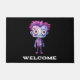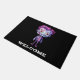 Un tapis de bienvenue avec une jolie illustration. Monstre Frankenstein aux cheveux roses et violets et au manteau et à la cravate dapper.
