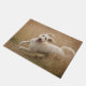 Goldendoodle, bouche ouverte, oreilles clignotantes, court à travers l'herbe haute.