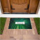 Un tapis de bienvenue avec une photo de closeup d'une feuille verte tropicale arborant des frondes de palmiers vibrantes. Un cadre rectangle blanc superposé avec votre texte à l'intérieur.
