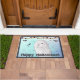 Accueillir les invités avec un style éffrayant-mignon! Ce tapis de porte d'Halloween présente un adorable fantôme souriant, un bunting festif, et un texte "Happy Halloween" avec des chauves-souris volant au-dessus. Une façon amusante et familiale de décorer votre porche avant, entrée ou espace intérieur pour la saison.