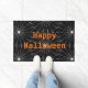 Le tapis de porte d'Halloween est affiché en noir avec une impression festive de toiles d'araignée. Customisez ce tapis ou achetez tel quel. Image stock