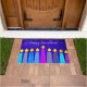 "Bonne Hanoukka." Décorez votre entrée en "style" avec ce tapis de bienvenue personnalisé unique et amusant! Une illustration ludique, moderne et artistique de bougies motifs de saumons dans une menorah vous aide à inaugurer les vacances de Hanoukka. Des bougies bleues assorties de motifs de fausse feuille colorés et de flammes de fausse feuille d'or recouvrent un arrière - plan riche, texturé en bleu profond. Changez le message d'accueil si vous désirez en faire une autre copie ou votre nom. Cartes de correspondance, autocollants, ornements, tasses, produits de la boisson, coussins, décoration de maison, et plus encore sont également disponibles. Quelle façon divertissante de célébrer cette saison festive et d'accueillir tous ceux qui entrent dans votre demeure ! En utilisant les modèles faciles à utiliser, changez le message d'accueil à votre nom ou autre copie, et vous pouvez personnaliser ce tapis Hanoukka sans effort. S'il vous plaît, envoyez-moi un message avec toute question ou demande.