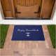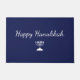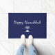 Joyeux tapis de portes bleu Hanoukka, dessiné à la main et design de scripts. Avec le lettrage typographique personnalisable, vous pouvez ajouter votre propre texte. Un objet de décoration de maison de vacances en plein air avec une touche de saison.