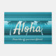 colorway turquoise. Le message d'Aloha accueille vos visiteurs dans votre propre paradis tropical. Des palmiers balançoires jouent contre un arrière - plan de rayures graphiques dans cette impression qui rappelle les motifs utilisés dans les chemises à aloha vintages et les shorts de table hawaïens. Ce design se décline en plusieurs couleurs. Vous pouvez customiser le message.