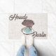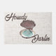 Vous cherchez un tapis de porte unique qui capte l'esprit de cow-girl côtière? Ne cherchez pas plus loin que cette aquarelle avec une huître au verre de mer turquoise à l'intérieur, dressée contre un faux arrière - plan couleur crème. Le texte dit "Howdy Darlin" pour une touche douce et personnelle. Ce format de document est personnalisable en modifiant le texte actuel, la couleur du texte ou en ajoutant un nom, la couleur arrière - plan et la conception.