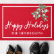 Bienvenue famille et amis avec ce tapis de portes Joyeux Fêtes. Il est décoré d'un faux-pied aquarelle sur un arrière - plan rouge. Facile à personnaliser. Utilisez l'outil de conception pour modifier la taille, le style ou la couleur du texte. Lorsque nous créons nos oeuvres, vous ne trouverez pas ces images exactes d'autres créateurs. Aquarelle originale © Michele Davies.
