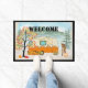 Joyeux Camper Porte d'automne Mat avec lac, cerfs et érables.