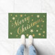 Paillasson Joyeux Noël Élégant Script Gold Stars Green