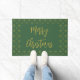 Ce mat vert foncé dit Joyeux Noël dans un élégant faux (pas de papier) script d'or. Un motif en faux or festif forme la frontière.