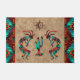 C'est un "One of a Kind" Sud-Ouest Kokopelli Doormat! Il comprend deux Kokopelli jouant la Flûte et dansant autour d'un cactus sous le soleil sur un Arrière - plan tan...Entouré d'une frontière sud-ouest en Turquoise, Orange et Noir! C'est une création artistique originale de l'artiste Kerry Miller.