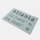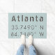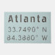 Coordonnées de latitude et de longitude d'Atlanta, Géorgie sur une carte avec une police grise de style industriel moderne sur fond bleu clair.