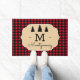 Ajoutez un peu de gaieté de vacances à votre porche ou à votre entrée avec ce tapis de portes élégamment audacieux. Le design plaid en coquillages rouge et noir apporte une chaleur feutrée à notre porte. C'est parfait pour la décoration d'automne et de Noël ! Le paillasson présente la lettre monogramme et le nom de votre famille dans un script accentué par les silhouettes des arbres de la forêt noire ci-dessus.