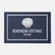 Bienvenue aux visiteurs avec ce modèle moderne de coquillages location de vacances Tapis de portes avec typographie moderne en blanc sur un arrière - plan bleu marine. Ajoutez votre nom personnalisé de location de vacances à cet élégant matelas, parfait pour une location de maison de plage, location de lac ou airbnb.