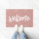 Fille glam 24x36 porte mat pour elle avec une parties scintillant de luxe faux rose or couleur or avec brillant. Le texte d'accueil est composé d'un style de calligraphie manuscrite en lettres blanches et modernes. Customisez la couleur, la taille et le style de la police dans cette conception de texte si vous préférez une conception de texte personnalisée. Vous trouverez une poignée de calligraphies audacieuses et modernes dans le système.