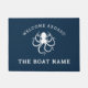 une couleur bleu marine, des détails personnalisés sur le nom du bateau et des éléments nautiques. La couleur bleue et le texte sont modifiables.