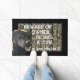 Un joli tapis de bienvenue avec le texte "Attention au propriétaire. Il A Un Arme À Feu. Je L'Ai Vu L'Utiliser ! " Ce design présente un arrière - plan camouflage avec une bordure noire. C'est parfait pour un chasseur et son oiseau.