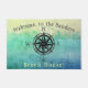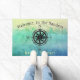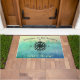Tapis de porte turquoise de mer d'Ombre. Un rose de boussole pour garder vos incidences d'océan. Appréciez l'effet élégant d'illusion optique avec Teal au bleu aux tons de turquoise de l'arrière - plan d'ombre. Gardez la citation "accueil à la Chambre de plage de la ponceuse" ou ajoutez votre propres nom, sentiment, salutations, ou monogramme pour customiser. Nautique, tropical, plage, style côtier !