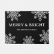 Festive holiday doormat with merry and bright typography and snowflake pattern .A black and white holiday welcome outdoor door mat to personalise with family name.