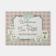 "Bienvenue à Our Patch", un mignon tapis décoratif d'Halloween avec d'adorables jack-o'lanternes de campagne. Célébrez Halloween avec ces produits de fête et décors de vacances rose, gris et pastel assortis. Créez une esthétique Country Halloween douce et amusante que tout le monde, y compris les enfants et les familles, appréciera.