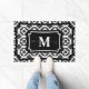 Monogram classe élégant noir et blanc élégant mat de porte. Un matelas à plateau-coussin, avec literie de qualité supérieure et draps en coton égyptien, est à votre disposition. Design élégant avec texte initial et gris clair script la famille Morgan, nom de famille américain.