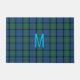 Tapis traditionnel bleu, vert, noir, mauve clan MacThomas tartan plaid porte, avec un monogramme bleu simple lettre, au milieu. Personnalisez la lettre pour vous-même ou comme une excellente idée cadeau.