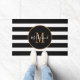 Placez votre véranda ou patio avant avec ce Tapis Monogram Or Stripes Noir et Blanc Classy. Cette conception minimale a des bandes horizontales noires sur l'arrière - plan blanc et la bordure circulaire au centre. Votre initiale de monogramme est en fausse écriture simple or et personnalisée avec le nom en blanc tendance écriture lettrée main. Cliquez sur l'option Personnaliser le modèle et suivez les invites.